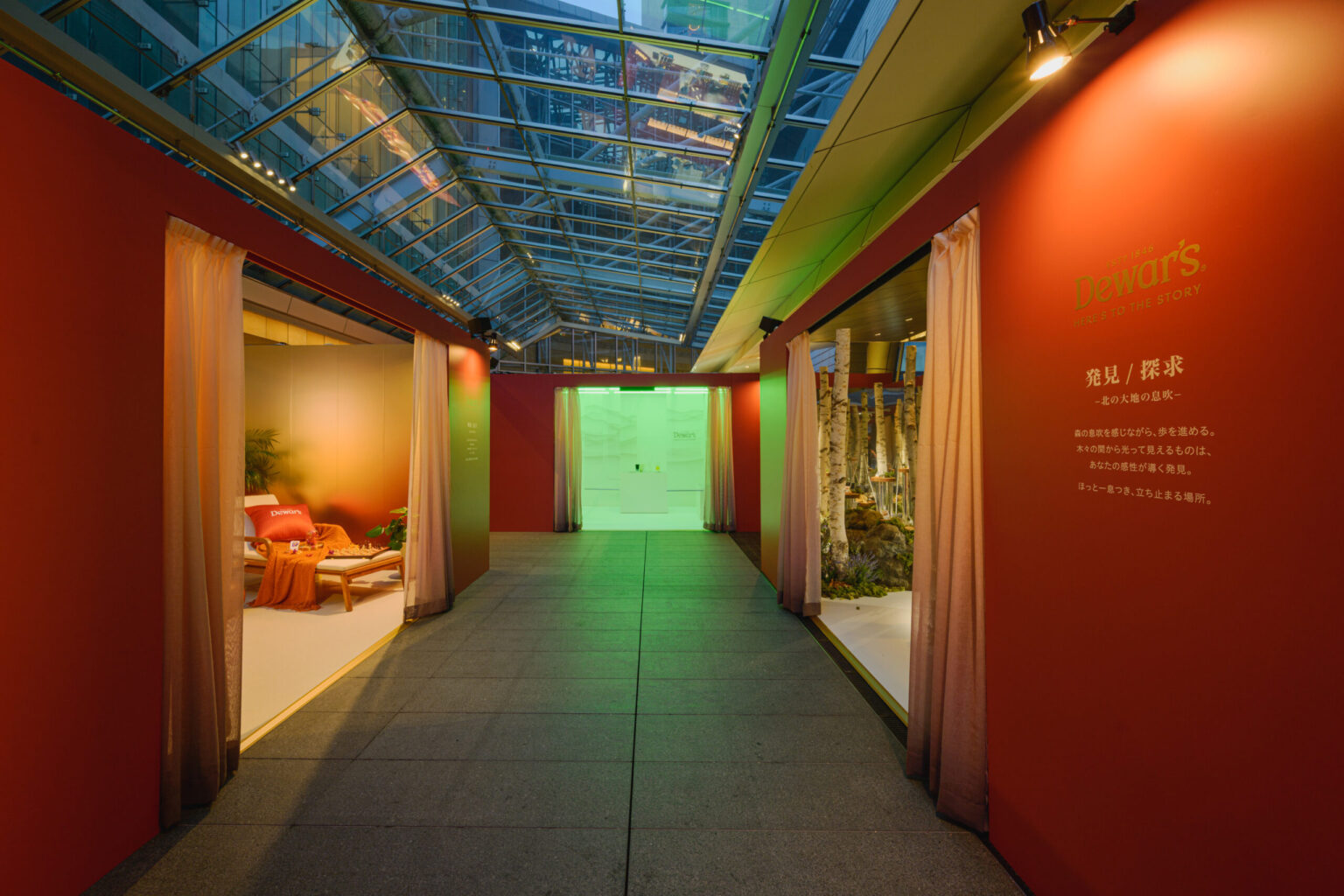 Guests moved through three rooms inspired by Japanese regions: Hokkaido’s forested, natural world; the warmth of Okinawa’s tropical coast; and Setouchi’s calm stillness, inspired by the Seto Inland Sea.
